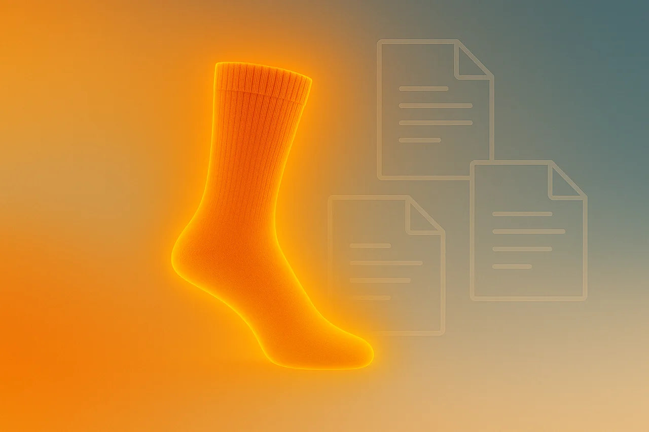 PDF or printed card file explaining proper sock care and sizing guidance for consumers. -